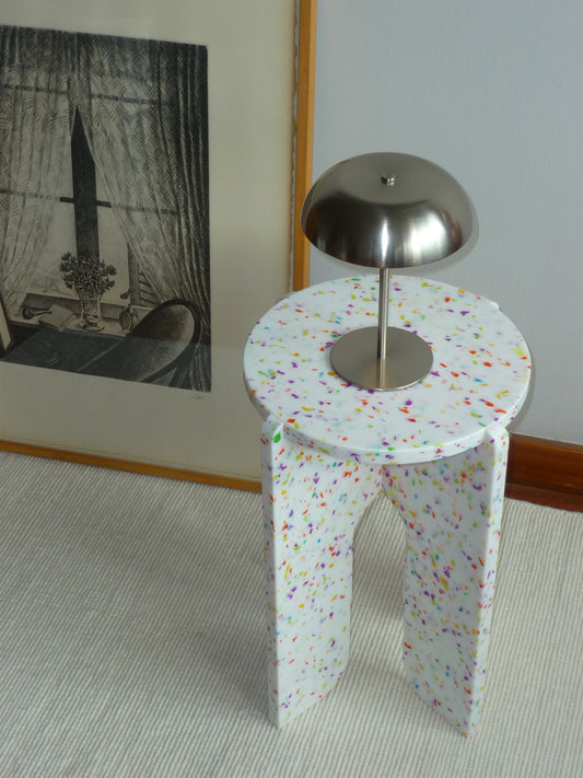 Material sostenible e innovador elaborado a partir de tapones, envases y residuos plásticos recuperados de entornos naturales.