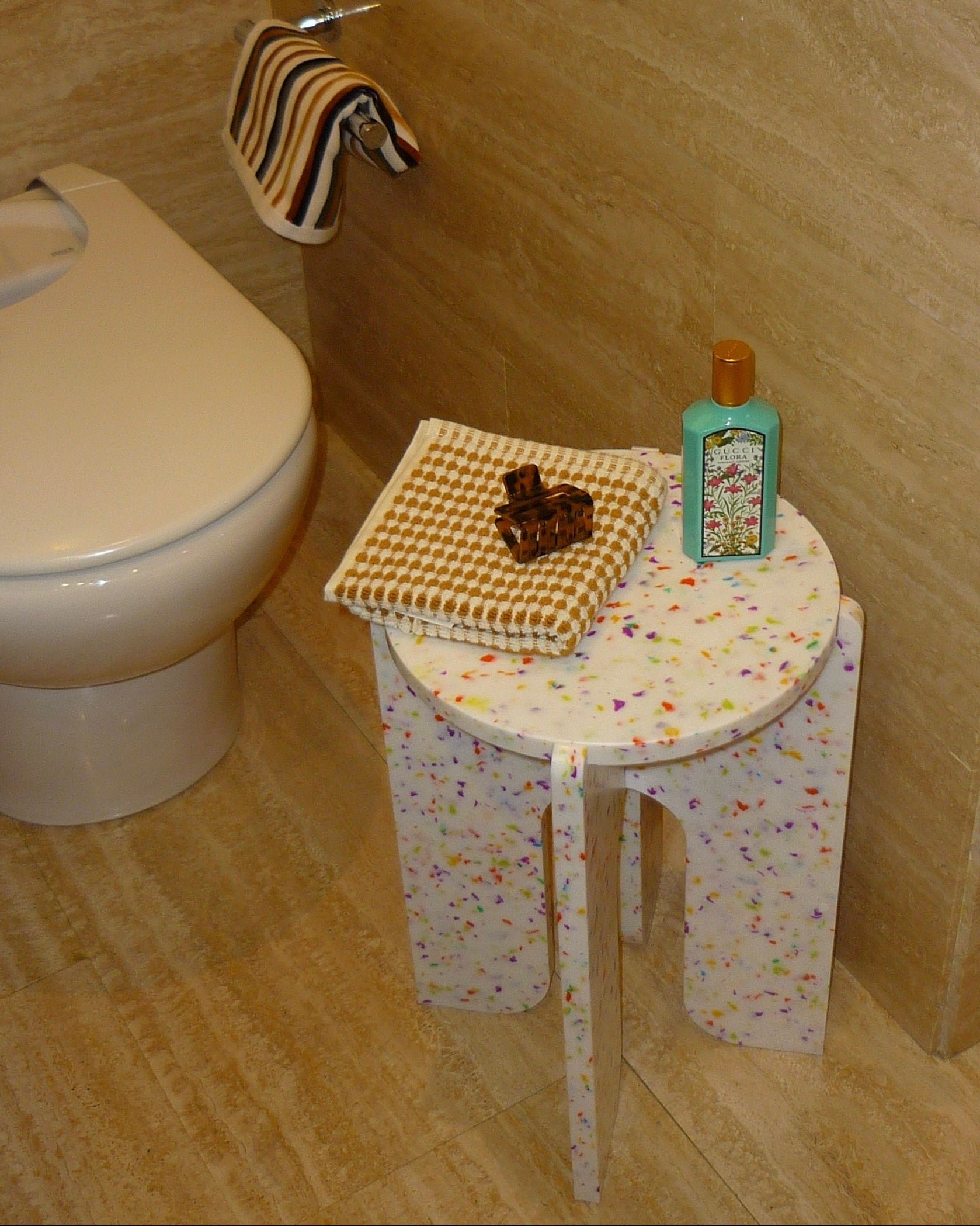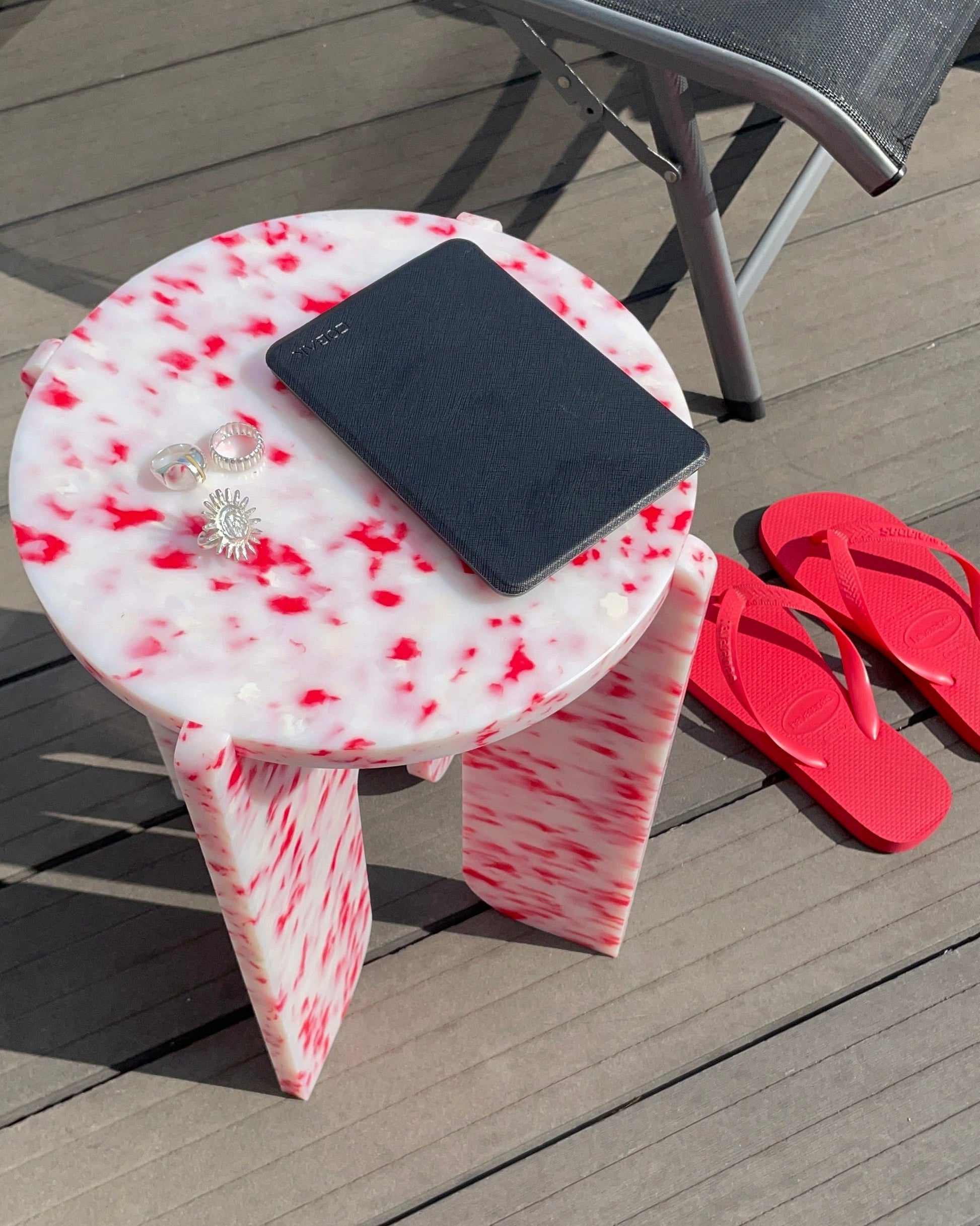 Fabricado en España con plástico reciclado de origen local, es una pieza de mobiliario versátil que puede utilizarse como taburete, mesa auxiliar o elemento decorativo.- * Cada pieza es única: los acabados pueden variar debido a nuestro trabajo artesanal con materiales reciclados.