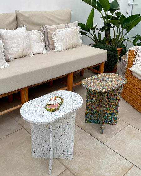 Es una pieza de diseño modular, fabricada en España con plástico 100 % reciclado de origen local.