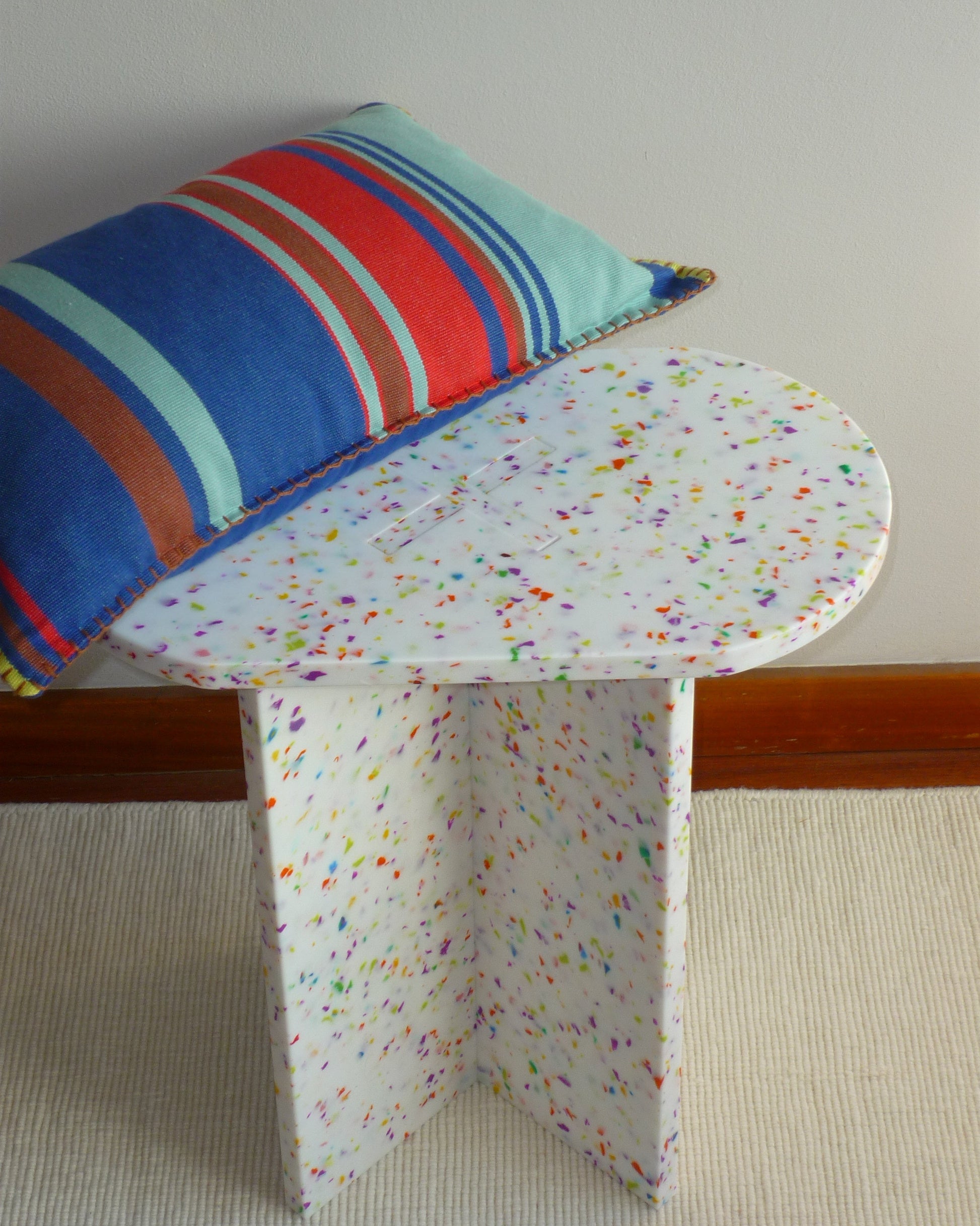 Es una pieza de diseño modular, fabricada en España con plástico reciclado de origen local.